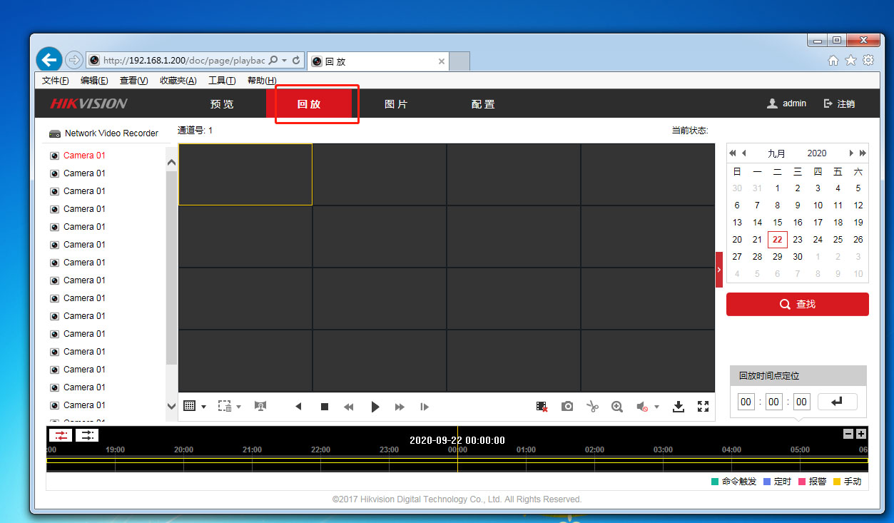 5、打開回放,如下圖左側選擇要下載錄像的通道,在右側選擇要日期和時間