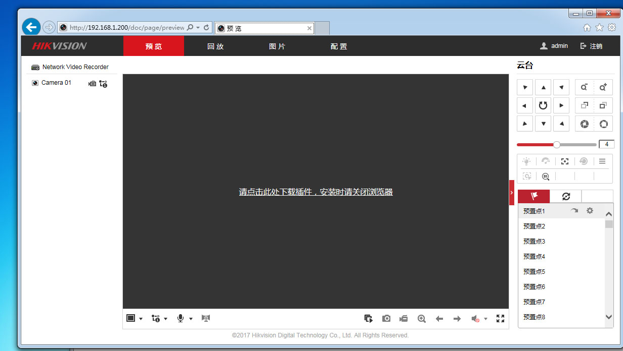 2、成功登錄后,如下圖界面,如是第一次登入錄像機,會提示下載插件,點擊下載插件。